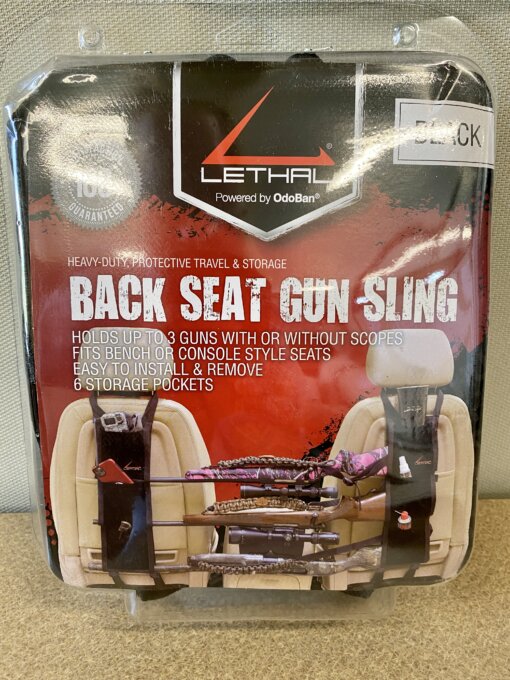 The Lethal® Backseat Gun Sling secures up to three shotguns or scoped rifles to the back of any vehicle seat for safe, stylish and convenient transport.