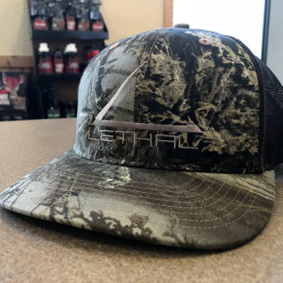 Our new mesh back Lethal® logo hat in Realtree Max-1 Camo is great for hunting, fishing or just kicking back in the outdoors. Snap back closure. One size fits most. Richardson 112P hat style.