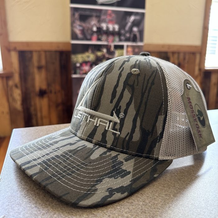 Our new mesh back hat with the Lethal® logo in Mossy Oak Bottomland is great for hunting, fishing or just kicking back in the outdoors. Snap back closure. One size fits most.