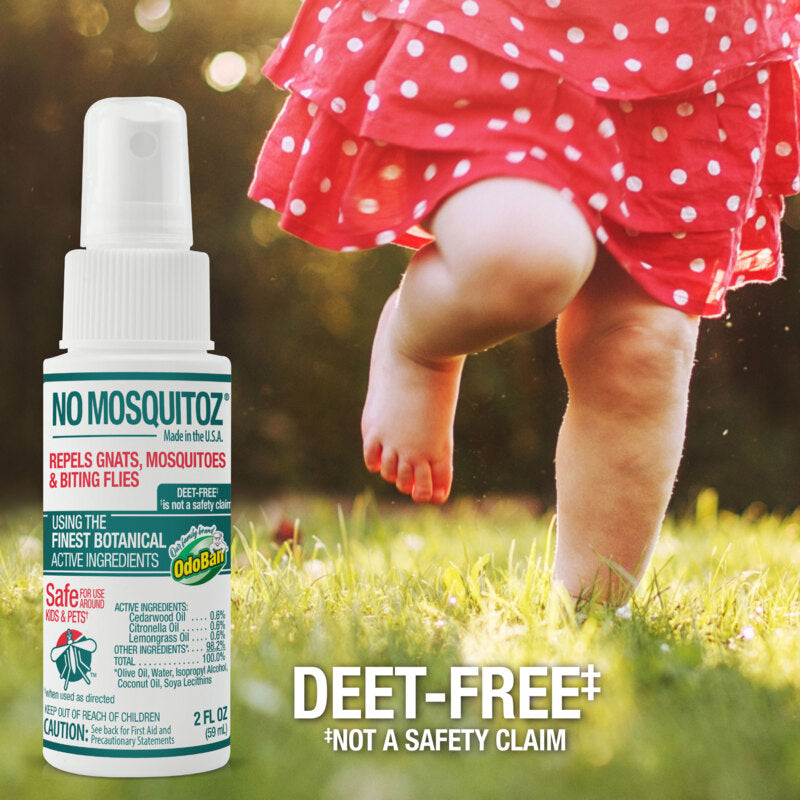 No Mosquitoz® botanical insect repellent is made with the finest botanical active ingredients, including cedarwood, citronella and lemongrass oils. Works safely* and effectively against mosquitoes. Also effective against gnats and biting flies. DEET-free formula†. Safe for use around kids and pets*. Non-greasy, non-sticky formula. Made with olive and coconut oils. Pleasant, woodsy scent. Made in USA.
